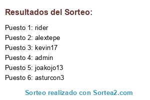 Lista de participantes: admin, rider, joakojo13, alextepe, kevin17, asturcon3.
