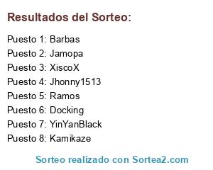Lista de participantes: Ramos, Kamikaze, Docking, Jamopa, YinYanBlack, Barbas, Jhonny1513, XiscoX.