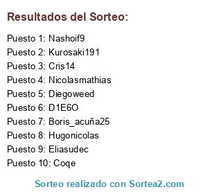 Lista de participantes: DJMiKEKO, Nickoo, Fnatic, Wriceth, Deivid, Bardock, Dyegoandres, Pellejunior, Jona.fenomeno, Lalitovilla, Psycha07ic.