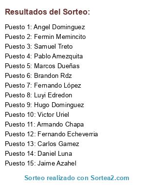 Lista de participantes: Fernando López, Angel Dominguez, Pablo Amezquita, Victor Uriel, Brandon Rdz, Samuel Treto, Marcos Dueñas, Luyi Edredon, Daniel Luna, Armando Chapa, Fermin Memincito, Fernando Echeverria, Carlos Gamez, Jaime Azahel, Hugo Dominguez.