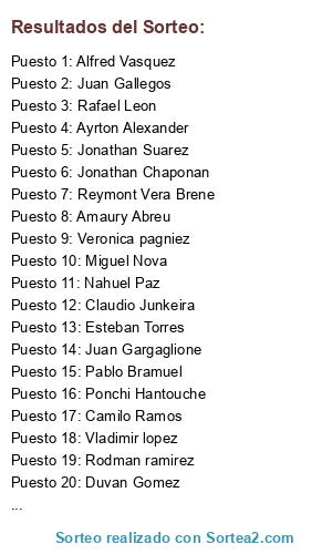 Resultados del sorteo: