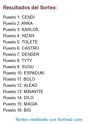 Lista de participantes: ALEAD, ARKA, BIG, BOLO, CASTRO, CENDI, DENDER, DILO, ESPADUKI, HIZAN, KARLOS, MAGIA, MINAVITE, SUGU, TYTY, TOLETE.