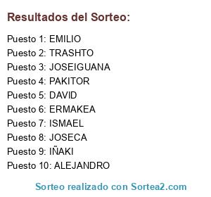 Lista de participantes: PAKITOR, IÑAKI, JOSEIGUANA, ISMAEL, EMILIO, DAVID, TRASHTO, JOSECA, ALEJANDRO, ERMAKEA.