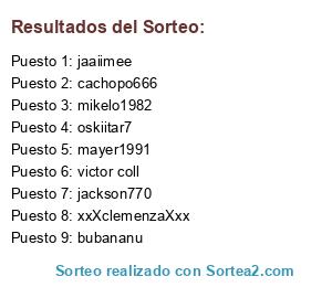 Lista de participantes: jaaiimee, jackson770, cachopo666, xxXclemenzaXxx, victor coll, mayer1991, bubananu, mikelo1982, oskiitar7.