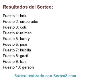Lista de participantes: gacti, gerson, fras, emperador, coti, bubilla, banry, raiman, jose, bolu.