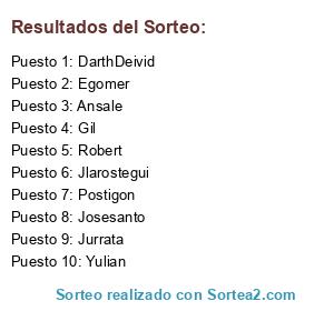 Lista de participantes: DarthDeivid, Egomer, Gil, Jlarostegui, Josesanto, Jurrata, Postigon, Robert, Yulian, Ansale.