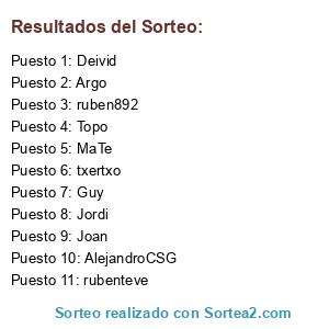 Lista de participantes: rubenteve, MaTe, Topo, Deivid, Joan, Guy, txertxo, Jordi, ruben892, Argo, AlejandroCSG.