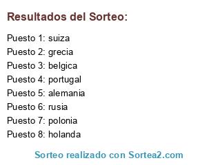 Lista de participantes: polonia, rusia, alemania, grecia, holanda, suiza, portugal, belgica.