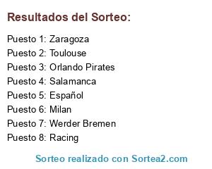 Lista de participantes: Racing, Toulouse, Orlando Pirates, Werder Bremen, Salamanca, Zaragoza, Español, Milan.