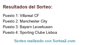 Lista de participantes: Manchester City, Bayern Leverkusen, Sporting Clube Lisboa, Villareal CF.