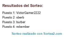 Lista de participantes: VictorGamer2222, burber, rebember, sberb.