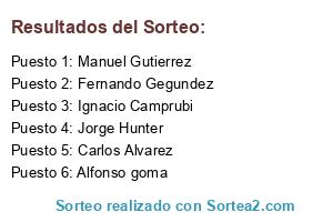 Lista de participantes: Carlos Alvarez, Ignacio Camprubi, Fernando Gegundez, Alfonso goma, Manuel Gutierrez, Jorge Hunter.