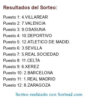 Lista de participantes: 1.REAL MADRID, 2.BARCELONA, 3.SEVILLA, 4.VILLAREAR, 5.REAL SOCIEDAD, 6.XEREZ, 7.VALENCIA, 8.ZARAGOZA, 9.OSASUNA, 10.DEPORTIVO, 11.CELTA, 12.ATLETICO DE MADID..