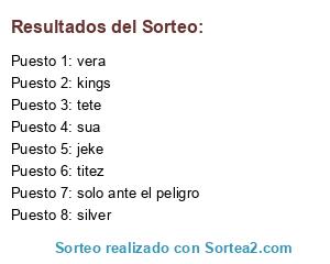 Lista de participantes: tete, sua, kings, silver, vera, jeke, titez, solo ante el peligro.