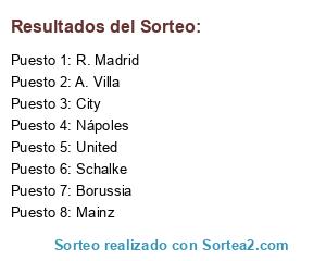 Lista de participantes: R. Madrid, Borussia, United, City, Schalke, A. Villa, Nápoles, Mainz.