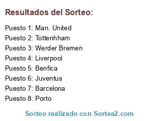 Lista de participantes: Barcelona, Tottenhham, Man. United, Porto, Liverpool, Werder Bremen, Juventus, Benfica.