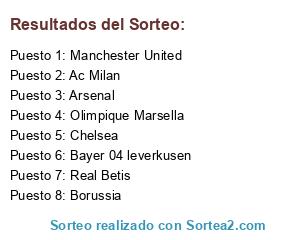 Lista de participantes: Real Betis, Arsenal, Manchester United, Bayer 04 leverkusen, Borussia, Ac Milan, Chelsea, Olimpique Marsella.