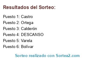 Lista de participantes: Ortega, Varela, Castro, Bolívar, Calderón, DESCANSO.