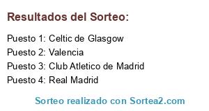 Lista de participantes: Club Atletico de Madrid, Real Madrid, Celtic de Glasgow, Valencia.