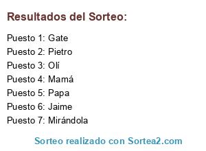 Lista de participantes: Pietro, Olí, Gate, Jaime, Mirándola, Mamá, Papa.