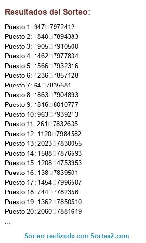Este sorteo ha sido certificado por Sortea2. Sortea2 garantiza que: