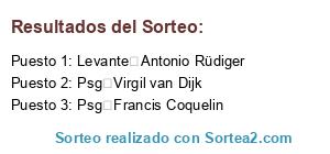 Lista de participantes: Valencia Cf Luuk de Jong, Valencia Cf Marco Reus, Valencia Cf Milan Škriniar, Valencia Cf Paul Pogba, Valencia Cf Héctor Villalba, Valencia Cf Hakan Çalhanoğlu, Valencia Cf Axel Witsel, Valencia Cf Marco Parolo, Valencia Cf Ricardo Centurión, Valencia Cf Serge Gnabry, Valencia Cf Xherdan Shaqiri, Valencia Cf Heung Min Son, Valencia Cf Pau López, Valencia Cf Ángel Di María, Valencia Cf Bartra, Valencia Cf Lucas, Valencia Cf Daniel Wass, Valencia Cf Rodrigo, Valencia Cf Stéphane Ruffier, Levante Willian, Levante Wendell, Levante Fabinho, Levante Joshua King, Levante Christian Eriksen, Levante Thomas Delaney, Levante Presnel Kimpembe, Levante Clément Lenglet, Levante Timo Werner, Levante Kingsley Coman, Levante Leon Bailey, Levante Felipe Anderson, Levante João Cancelo, Levante Abdoulaye Doucouré, Levante Salvatore Sirigu, Levante Alejandro Gómez, Levante Deulofeu, Levante Antonio Rüdiger, Levante Sven Ulreich, Psg Francis Coquelin, Psg Nicolás Tagliafico, Psg Ezequiel Lavezzi, Psg Bruma, Psg Kevin Strootman, Psg José María Giménez, Psg Virgil van Dijk, Psg Bernardo Silva, Psg Roberto Firmino, Psg Rafa, Psg Ousmane Dembélé, Psg Lucas Hernández, Psg Allan, Psg Nacho Fernández, Psg Jack Butland, Psg Odriozola, Psg Frenkie de Jong, Psg Thomas Lemar, Psg Moyá.