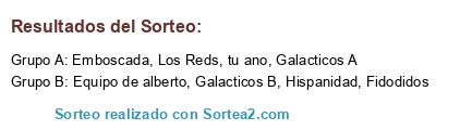 Lista de participantes: Galacticos A, Galacticos B, Los Reds, Fidodidos, Emboscada, Equipo de alberto, Hispanidad, tu ano.