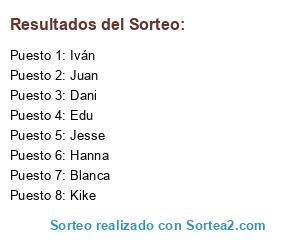 Lista de participantes: Iván , Paco , Jesse , Juan , Hanna , Kike , Edu , Blanca , Dani.
