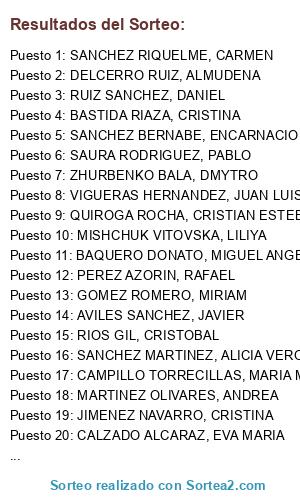 - Puesto 26: SANCHEZ SANCHEZ, JOSE MANUEL