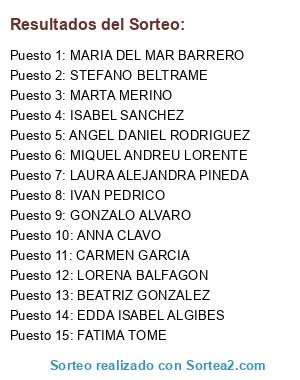 Resultados del sorteo: