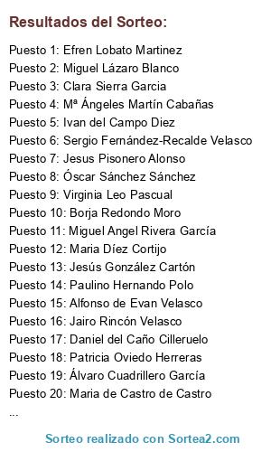Resultados del sorteo: