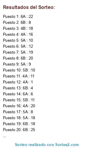 Resultados del sorteo: