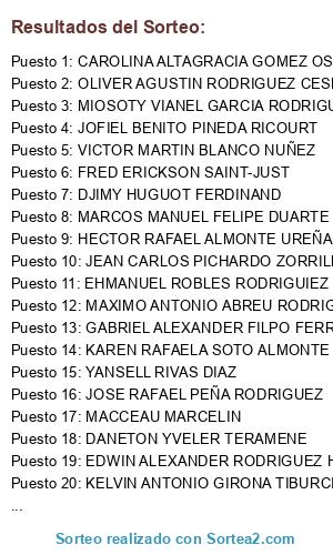 Resultados del sorteo: