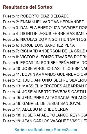 Lista de participantes: EDWIN ARMANDO GUERRERO CRUZ, NICOLAS DOMINGO THEN SANTOS, RICHARD ANDERSON DE LA CRUZ GOMEZ, GABRIEL DE JESUS SANDOVAL, ROBERTO DIAZ DELGADO, JOSE ALBERTO TAVERAS CASTILLO, ENMANUEL VARGAS HERNANDEZ, JEAN CARLOS VASQUEZ VASQUEZ, JOSE RAFAEL POLANCO REYNOSO, DIONI DE JESUS FERREIRAS SANTANA, JENNIPHER ALTAGRACIA POLANCO VERAS, VICTOR ALFONZO TAVARES RODRIGUEZ, JOSE VIRGILIO CASTILLO ESPINAL, ADELSO MICHEL CERDA, JORGE LUIS SANCHEZ PEÑA, MASSIEL MERCEDES ALBARRAN DIAZ, DANIELA ENEROLIZA TAVAREZ ROSARIO, JULIO ANTONIO BELTRE SILVERIO, ESCARLIN SORIBEL PEÑA HIRALDO.