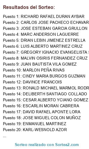 Resultados del sorteo: