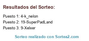 Lista de participantes: 1-doblete , 2-fonsiyu , 3-elrocho , 4-k_nelon , 5-exitfor , 6-puch666 , 7-Lenneland , 8-zero_ , 9-Xelxer , 10-XYOS6 , 11-vicodina , 12-ernen , 13-Dym , 14-I_Mou_I , 15-Liquid Snake yo , 16-DJ Deu , 17-Raizan Snake , 18-julepe , 19-SuperPadLand , 20-LAOP , 21-kopperpot , 22-adrick , 23-[ fj ] , 24-animally.