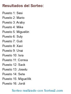 Resultados del sorteo: