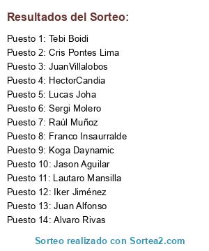 Lista de participantes: Alvaro Rivas, Jason Aguilar, Iker Jiménez, Franco Insaurralde, Cris Pontes Lima, Koga Daynamic, Raúl Muñoz, Lautaro Mansilla, Juan Alfonso, Lucas Joha, HectorCandia, Sergi Molero, Tebi Boidi, JuanVillalobos.