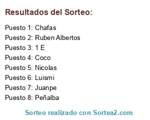 Lista de participantes: Luismi, Juanpe, Peñalba, Ruben Albertos, Coco, Nicolas, Chafas, 1 E.