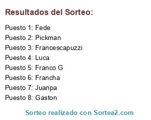 Lista de participantes: Juanpa, Pickman, Fede, Gaston, Francescapuzzi, Luca, Franco G, Francha.