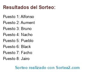 Lista de participantes: Jairo, Pueblo, Facho, Aument, Nacho, Black, Bruno, Alfonso.
