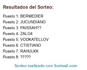 Lista de participantes: JUCUNDIANO, RAHULKK, VODKATELLOV, BERMEDIER, ZALO4, CTISTIANO, PAISSAH??, ?????.