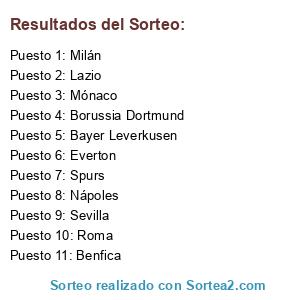 Resultados del sorteo: