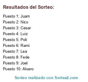 Lista de participantes: Lea, Poli, Luiz, Nico, Joel, Rami, Cesar, Juam, Alvaro, Fede.