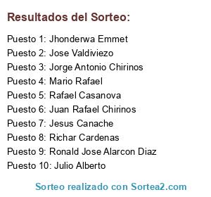 Resultados del sorteo: