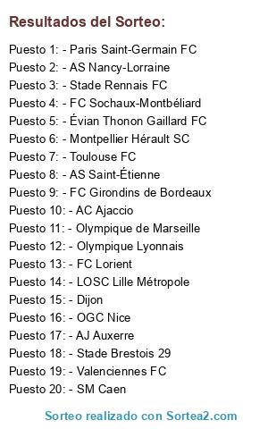 Lista de participantes: - AC Ajaccio, - AJ Auxerre, - FC Girondins de Bordeaux, - LOSC Lille Métropole, - FC Lorient, - Olympique Lyonnais, - Olympique de Marseille, - Montpellier Hérault SC, - AS Nancy-Lorraine, - OGC Nice, - Paris Saint-Germain FC, - Stade Rennais FC, - FC Sochaux-Montbéliard, - AS Saint-Étienne, - Toulouse FC, - Valenciennes FC, - Stade Brestois 29, - SM Caen, - Dijon, - Évian Thonon Gaillard FC.