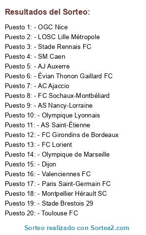 Lista de participantes: - AC Ajaccio, - AJ Auxerre, - FC Girondins de Bordeaux, - LOSC Lille Métropole, - FC Lorient, - Olympique Lyonnais, - Olympique de Marseille, - Montpellier Hérault SC, - AS Nancy-Lorraine, - OGC Nice, - Paris Saint-Germain FC, - Stade Rennais FC, - FC Sochaux-Montbéliard, - AS Saint-Étienne, - Toulouse FC, - Valenciennes FC, - Stade Brestois 29, - SM Caen, - Dijon, - Évian Thonon Gaillard FC.