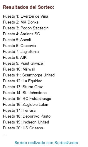 Lista de participantes: Talleres, Temperley, Aldovisi, Quilmes, Well. Phoenix, Sturm Graz, Excel Mouscron, Audax Italiano, Everton de Viña, Wanderers, Deportivo Pasto, La Equidad, Patriotas, St. Johnstone, Amiens SC, Bourg-Peronnas, Cham. Niortais, RC Estrasbusgo, Tours FC, US Orleans, Valenciennes FC, Millwall, MK Donks, Oxford United, Scunthorpe United, Ascoli, Ferrara, Latina, FC Luzern, Kashiwa Reysol, Sagan Tosu, Molde FK, Stromsgodset IF, Cracovia, Jagiellonia, Piast Gliwice, Pogon Szczecin, Zaglebie Lubin, Incheon United, AIK.