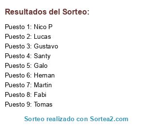 Lista de participantes: Lucas, Tomas, Galo, Santy, Gustavo, Fabi, Hernan, Martin, Nico P.