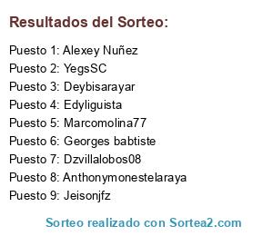 Lista de participantes: Deybisarayar, Anthonymonestelaraya, Dzvillalobos08, Jeisonjfz, Edyliguista, Georges babtiste, Alexey Nuñez, Marcomolina77, YegsSC.
